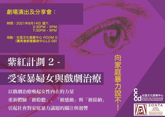劇場演出及分享 紫紅計劃2 受家暴婦女與戲劇治療 Centre For Community Cultural Development 社區文化發展中心 Hong Kong Hk August 14 21